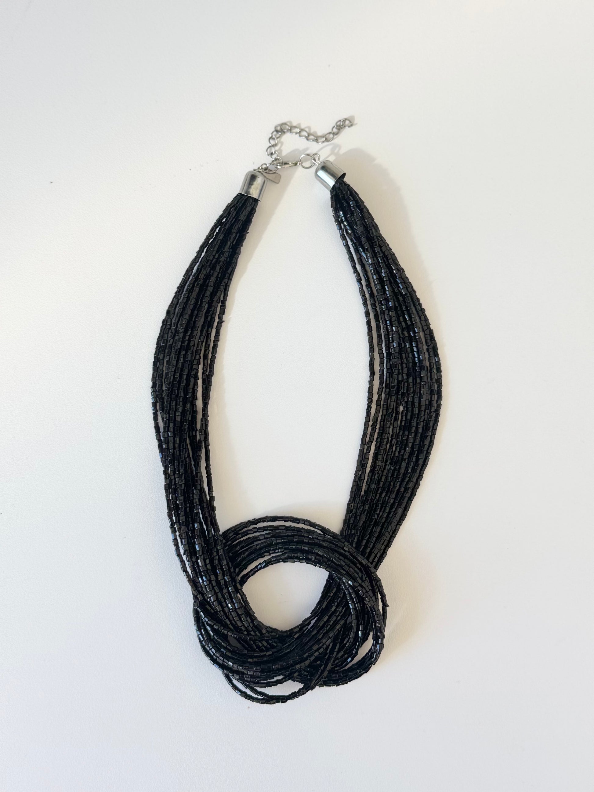 Vintage amazing statement knotted black seed bead necklace