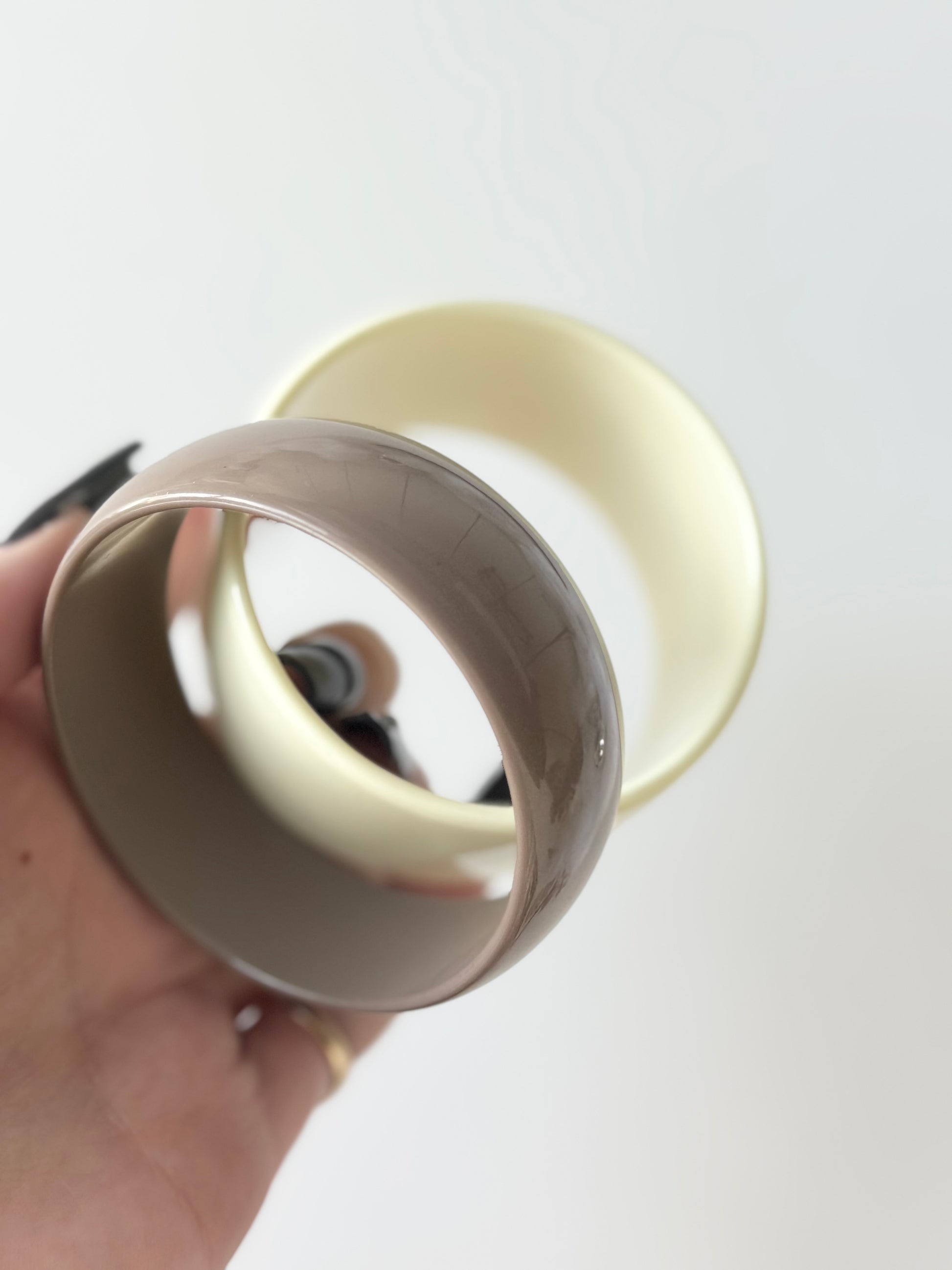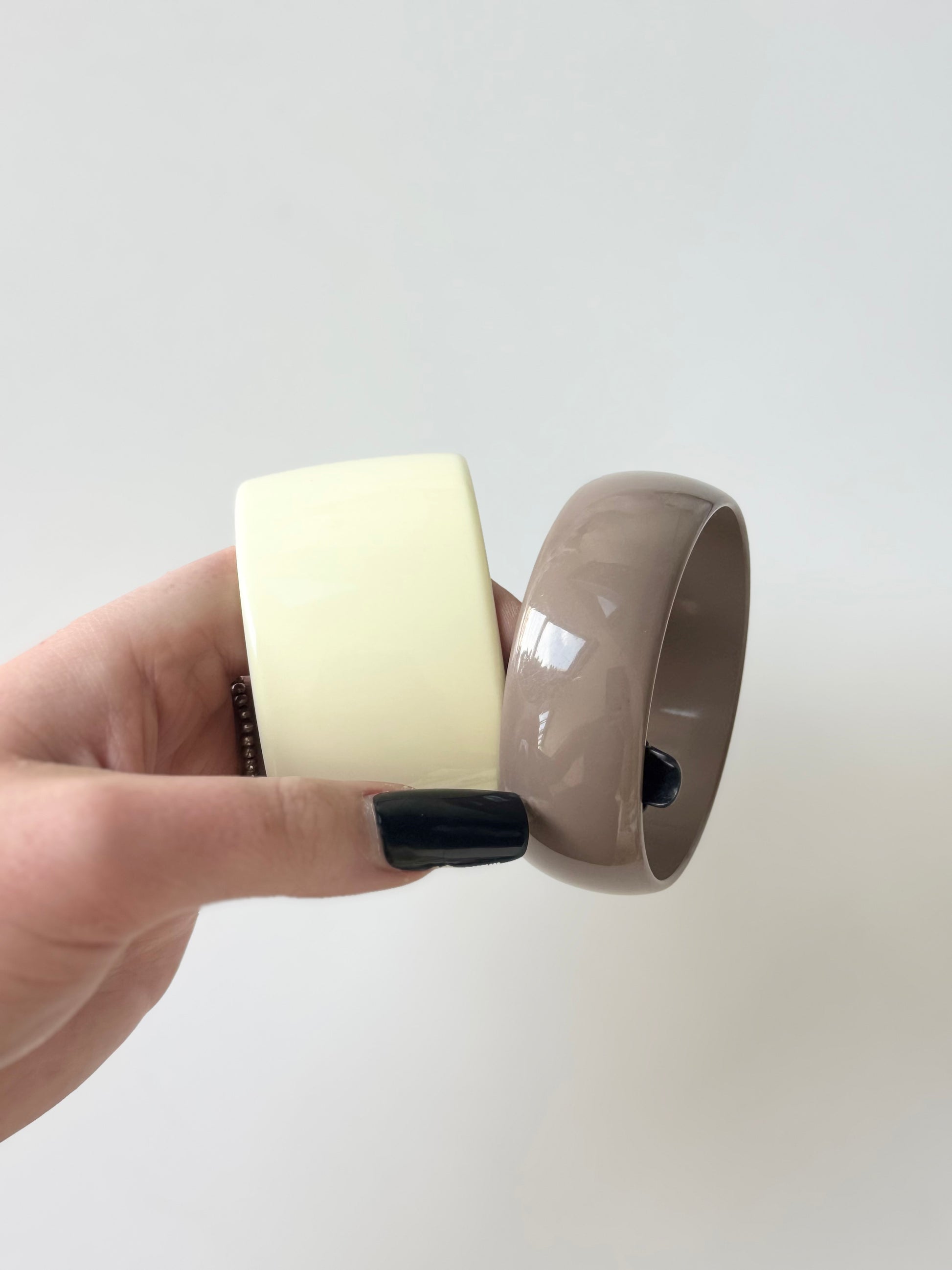 Vintage cream and muddy grey lucite bangle set