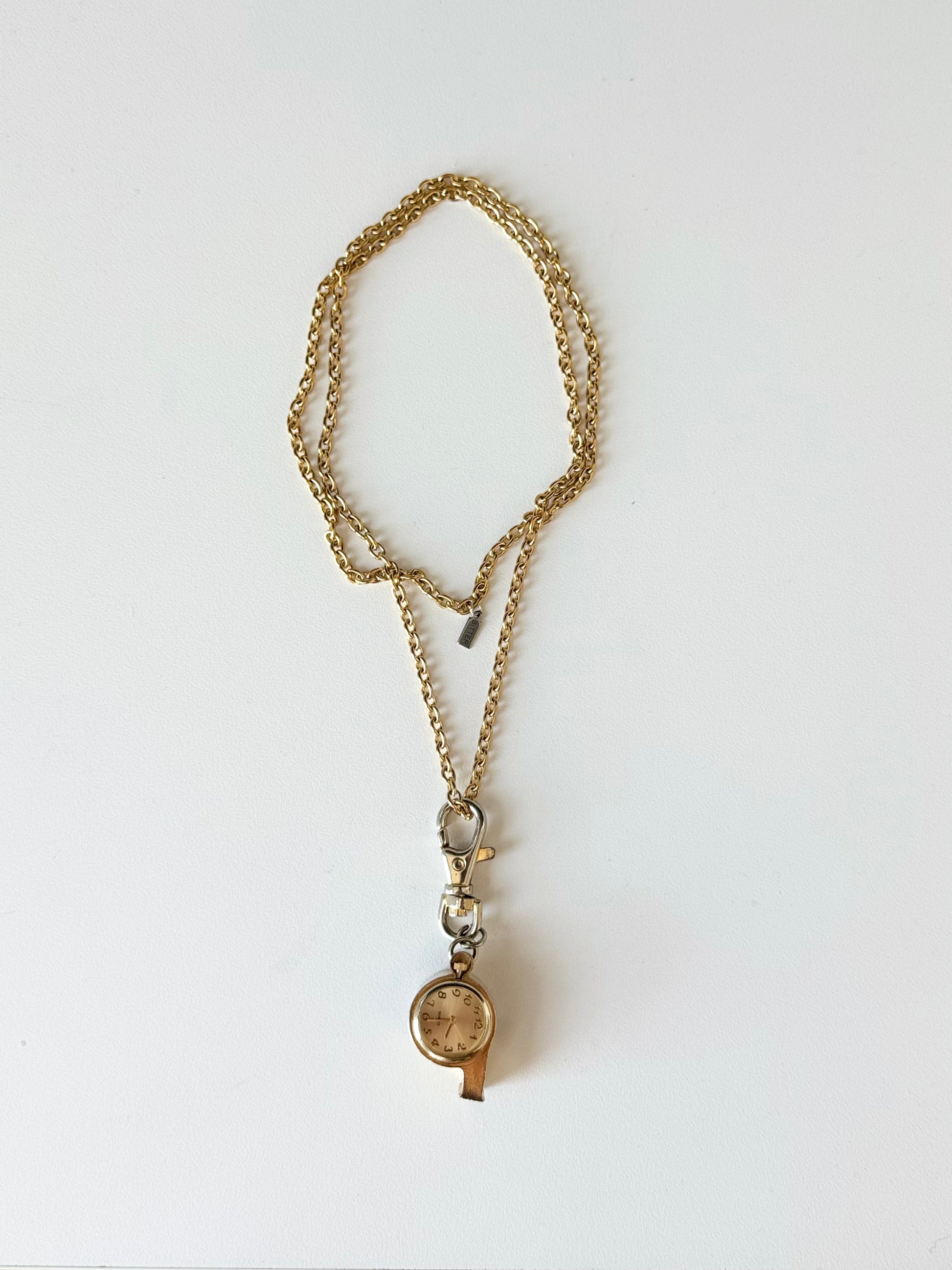 Vintage reworked 18k gold plated stainless steel whistle watch necklace
