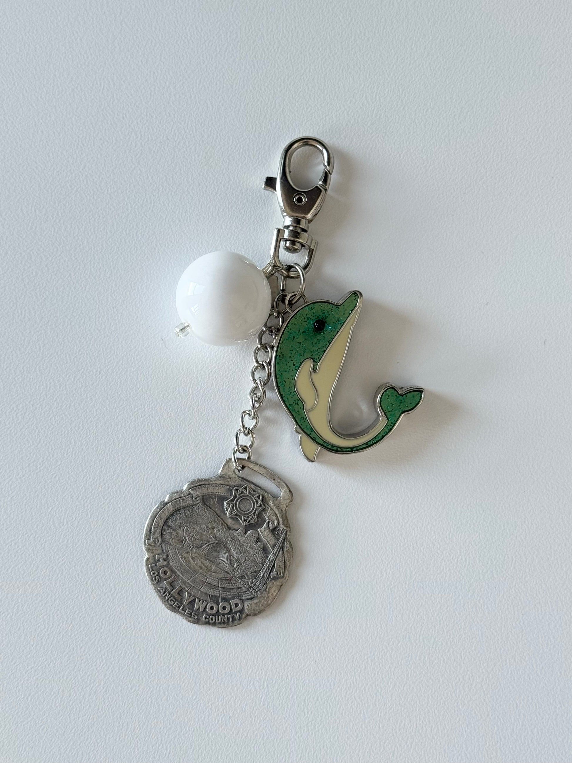 Vintage upcycled found metal "hollywood" piece, open/close digital dolphin watch pendant (untested), jumbo white acrylic bead
