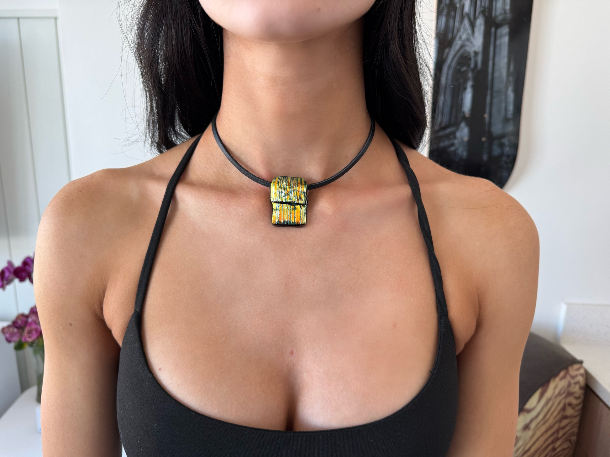 Vintage reworked glass pendant choker