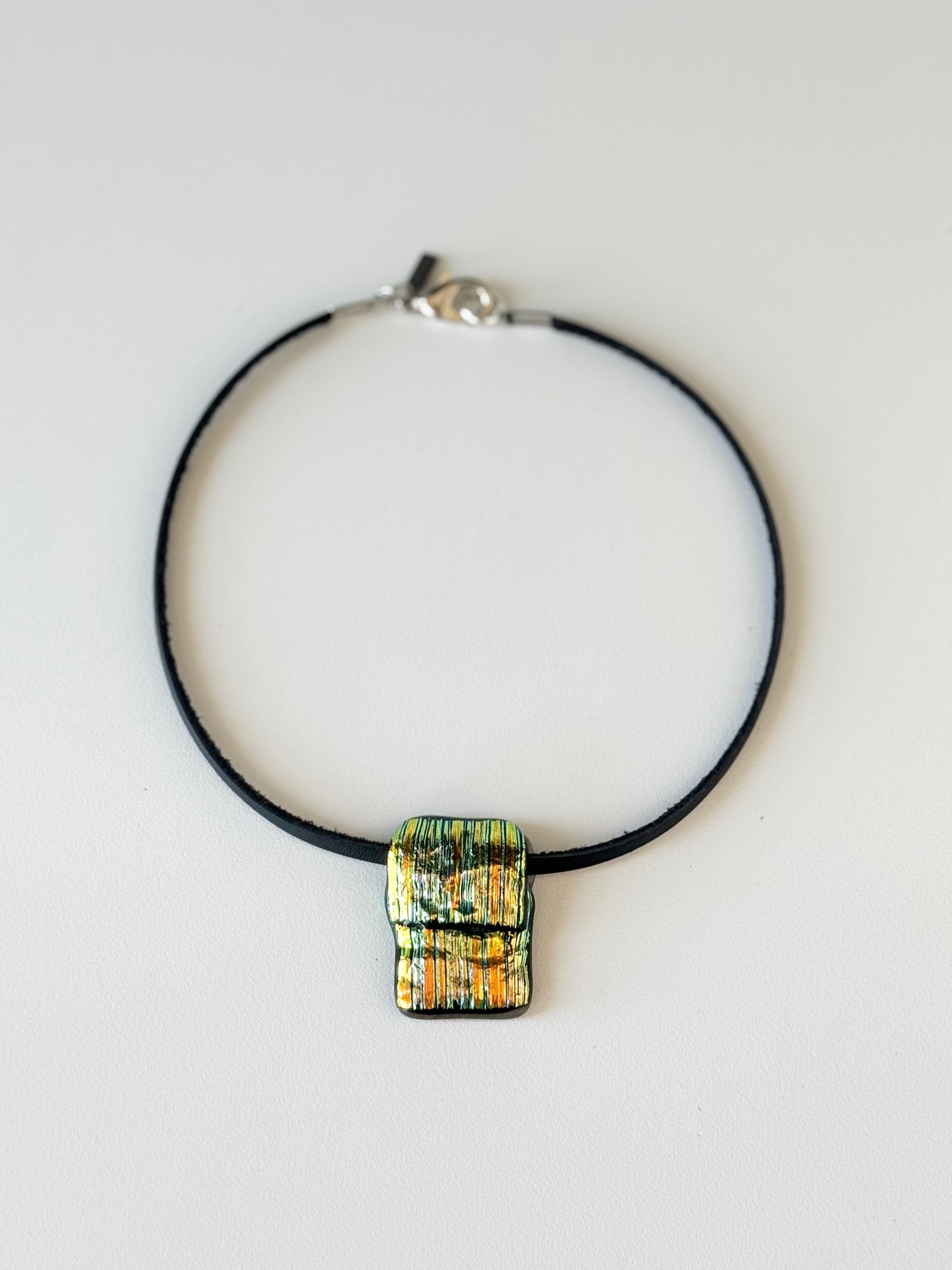 Black leather cord with vintage Murano glass pendant