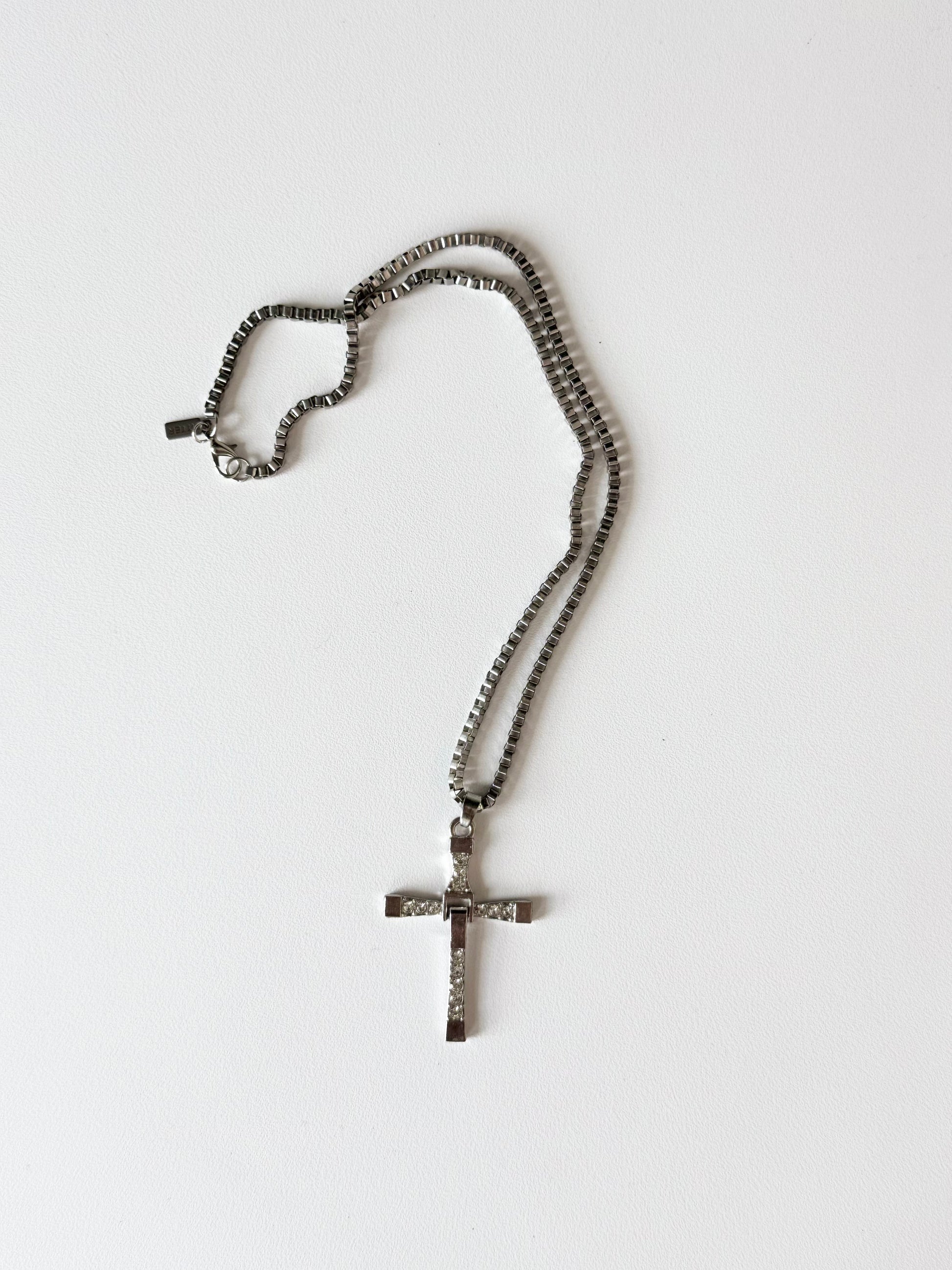 Vintage silver rhinestone cross necklace