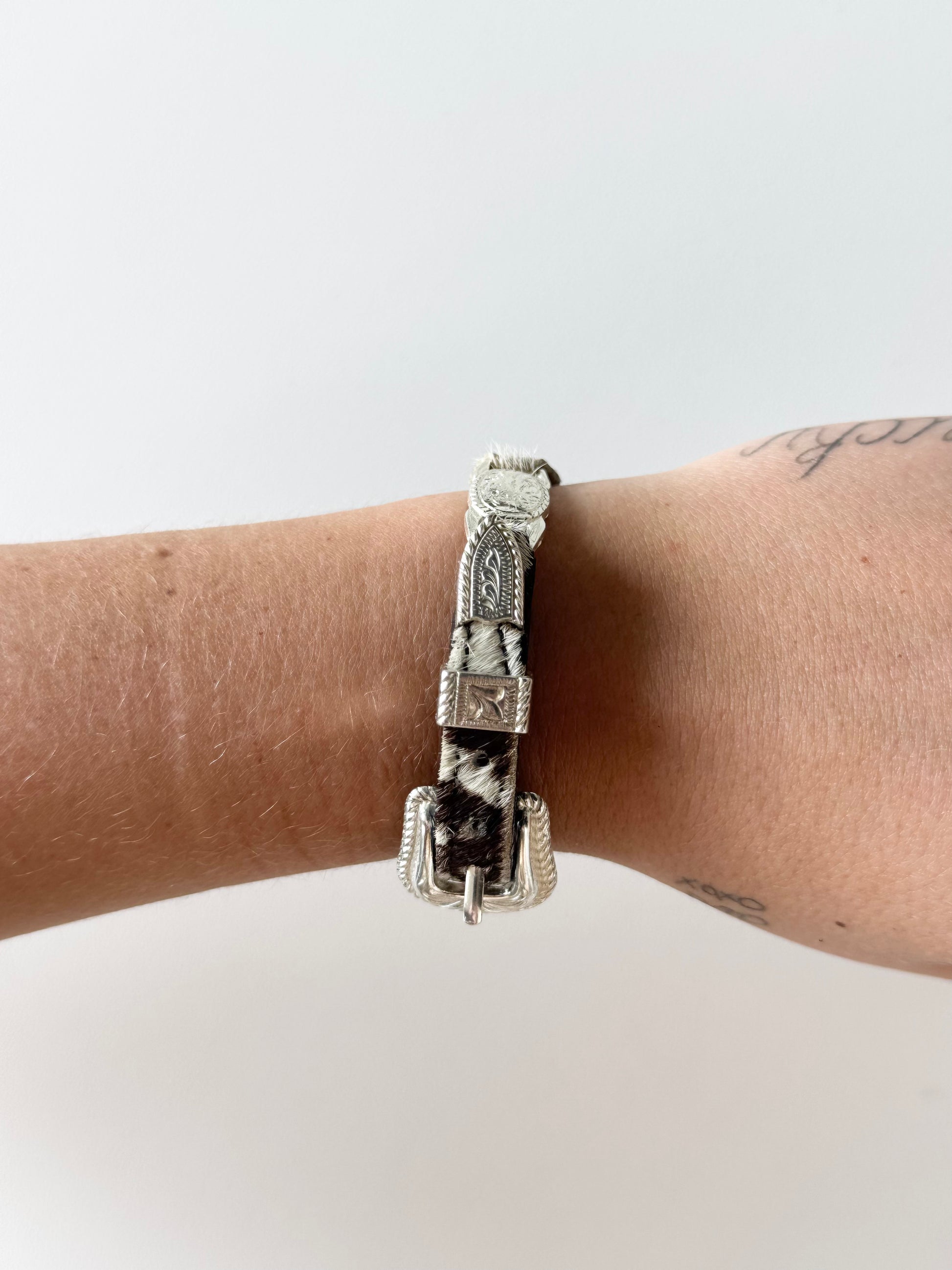 Vintage RARE faux cow hair buckle bracelet