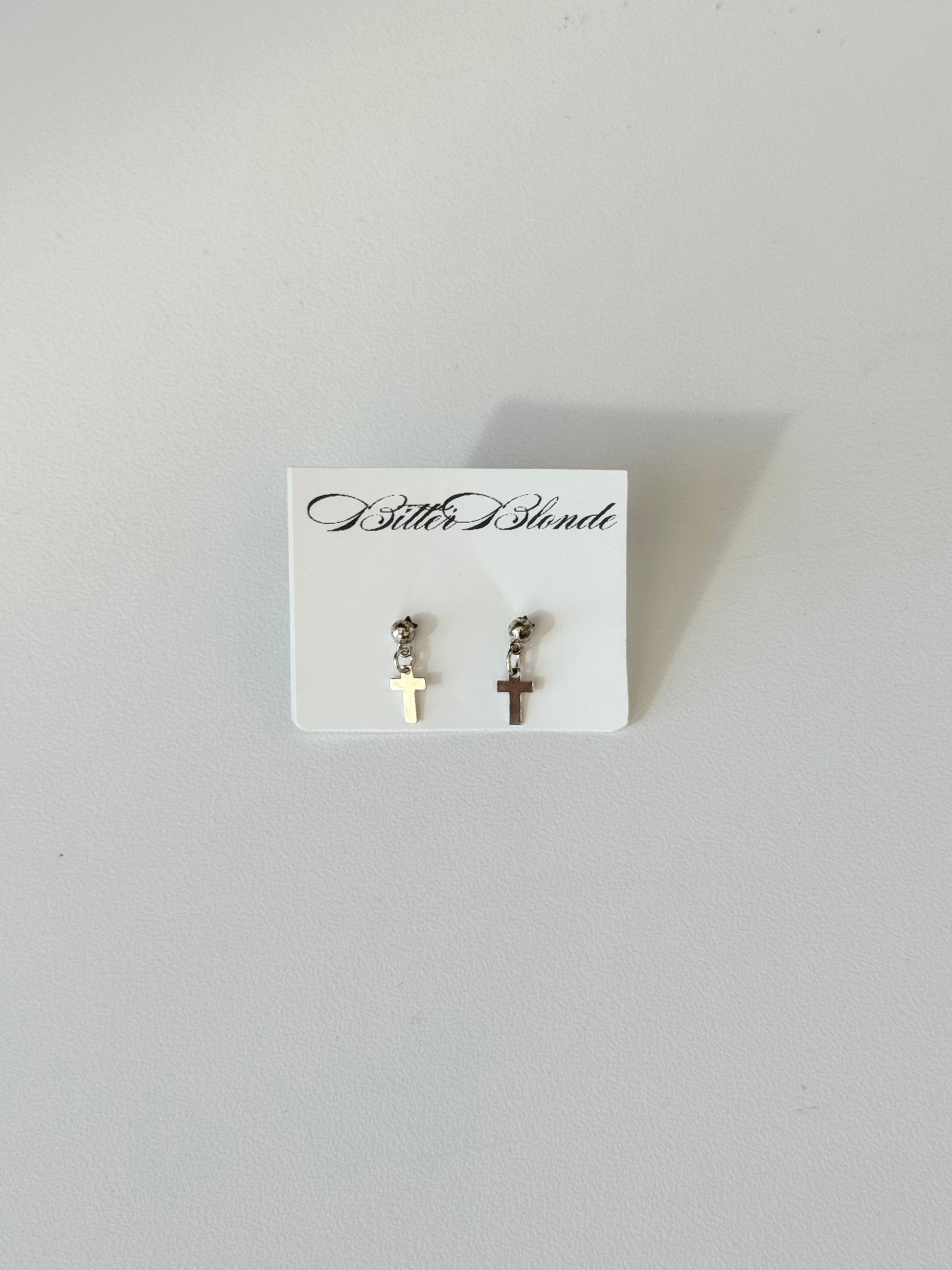 Vintage adorable silver cross stud earrings