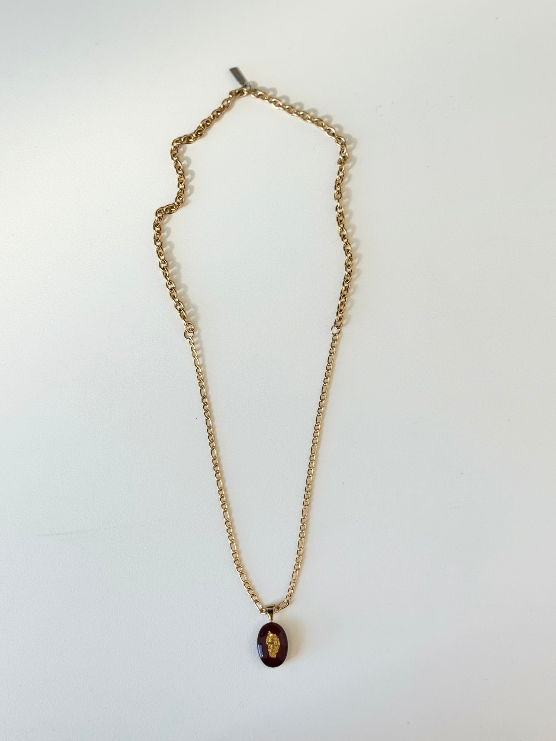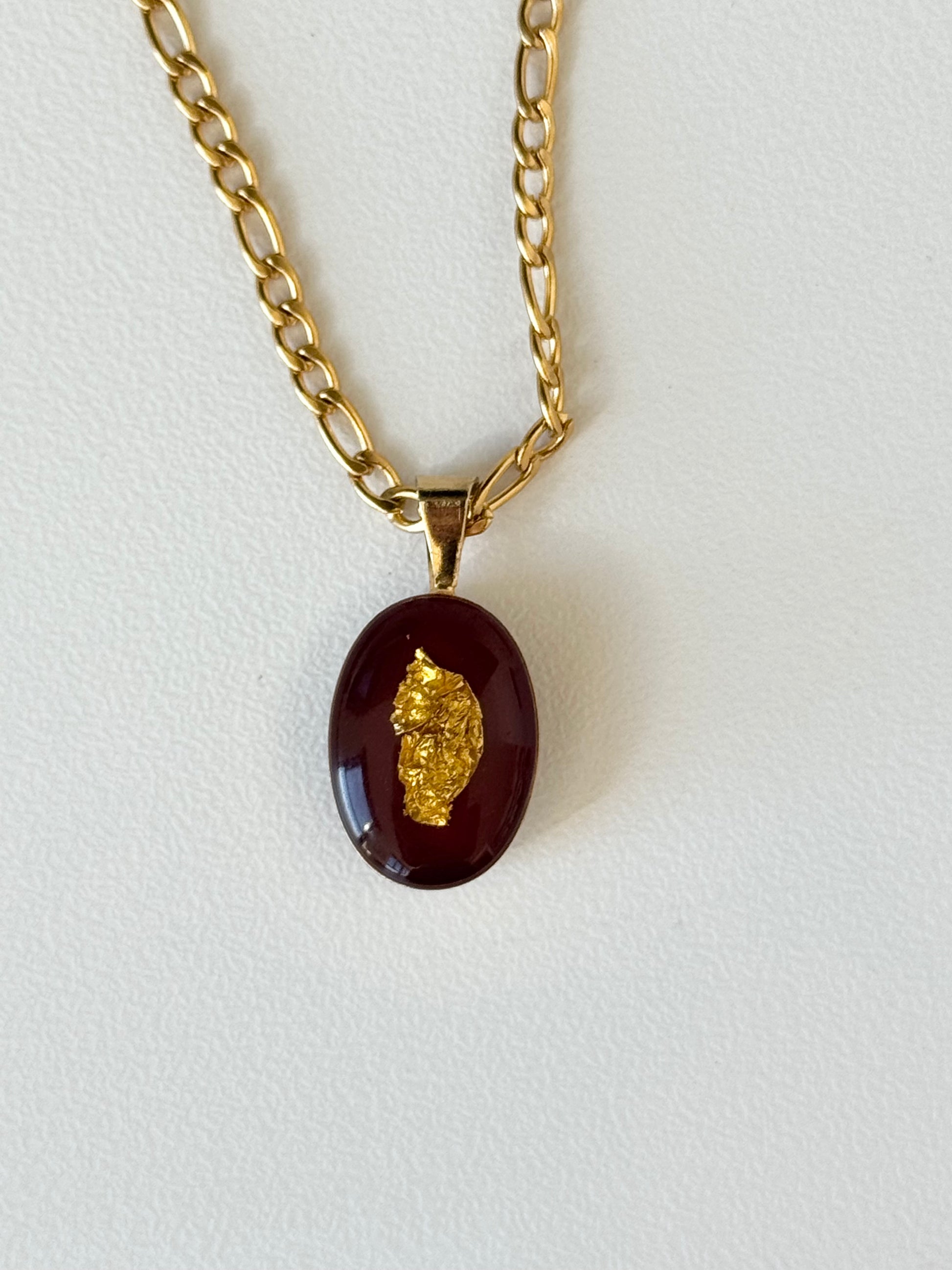 Antique burgundy gold leaf gold plated pendant sourced directly in Paris summer of 2024- rare piece